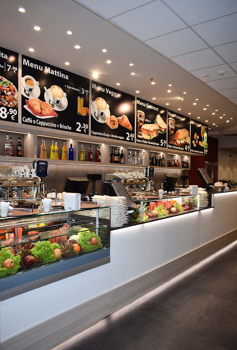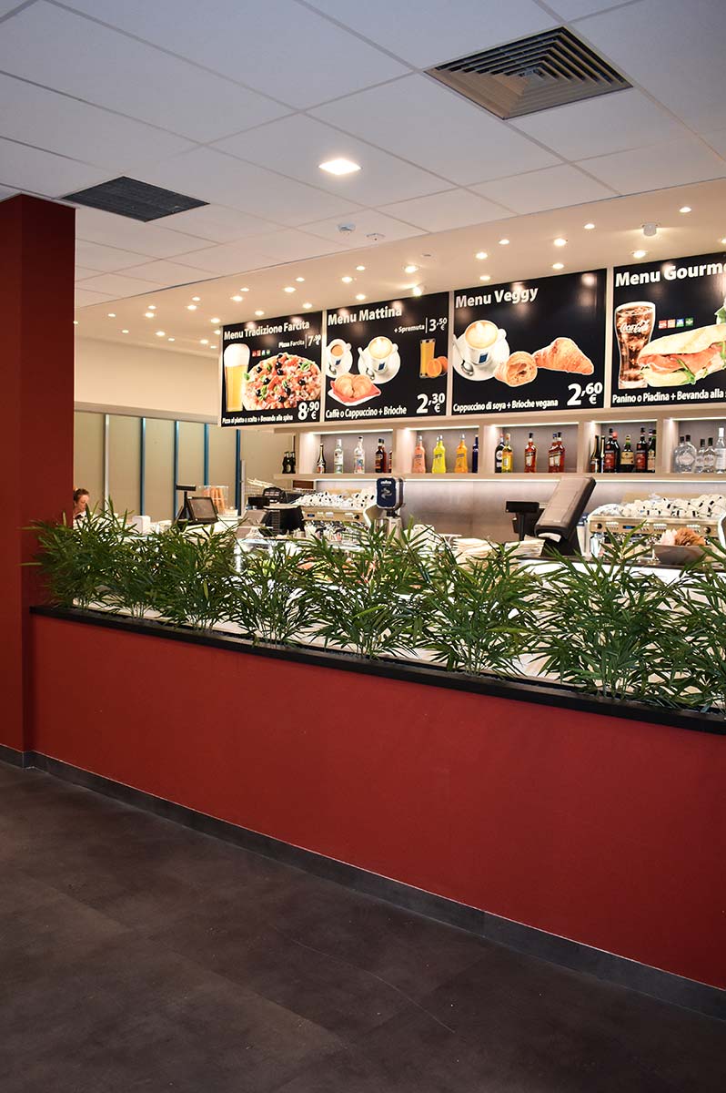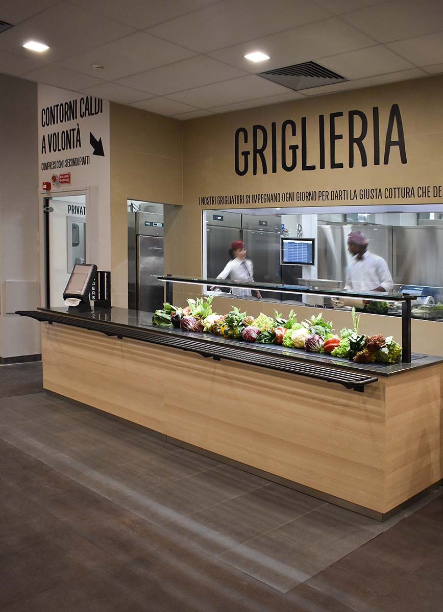 L’obiettivo: gestire più di mille coperti al giorno in modo agile ed all’interno di un ambiente funzionale ma allo stesso tempo accogliente e colorato. Abbiamo lavorato per molti mesi in maniera sinergica con un folto numero di artigiani e con il gruppo Flunch Italia nella progettazione, nel disegno e nella produzione di tutti gli arredi dei ristoranti della catena. Il risultato sono i locali di Torino, Genova, Roma, Novate, Collegno e Bari: luoghi in cui grazie alle luci, i colori, le grafiche e i materiali viene esaltato il buon cibo italiano, genuino come a casa.